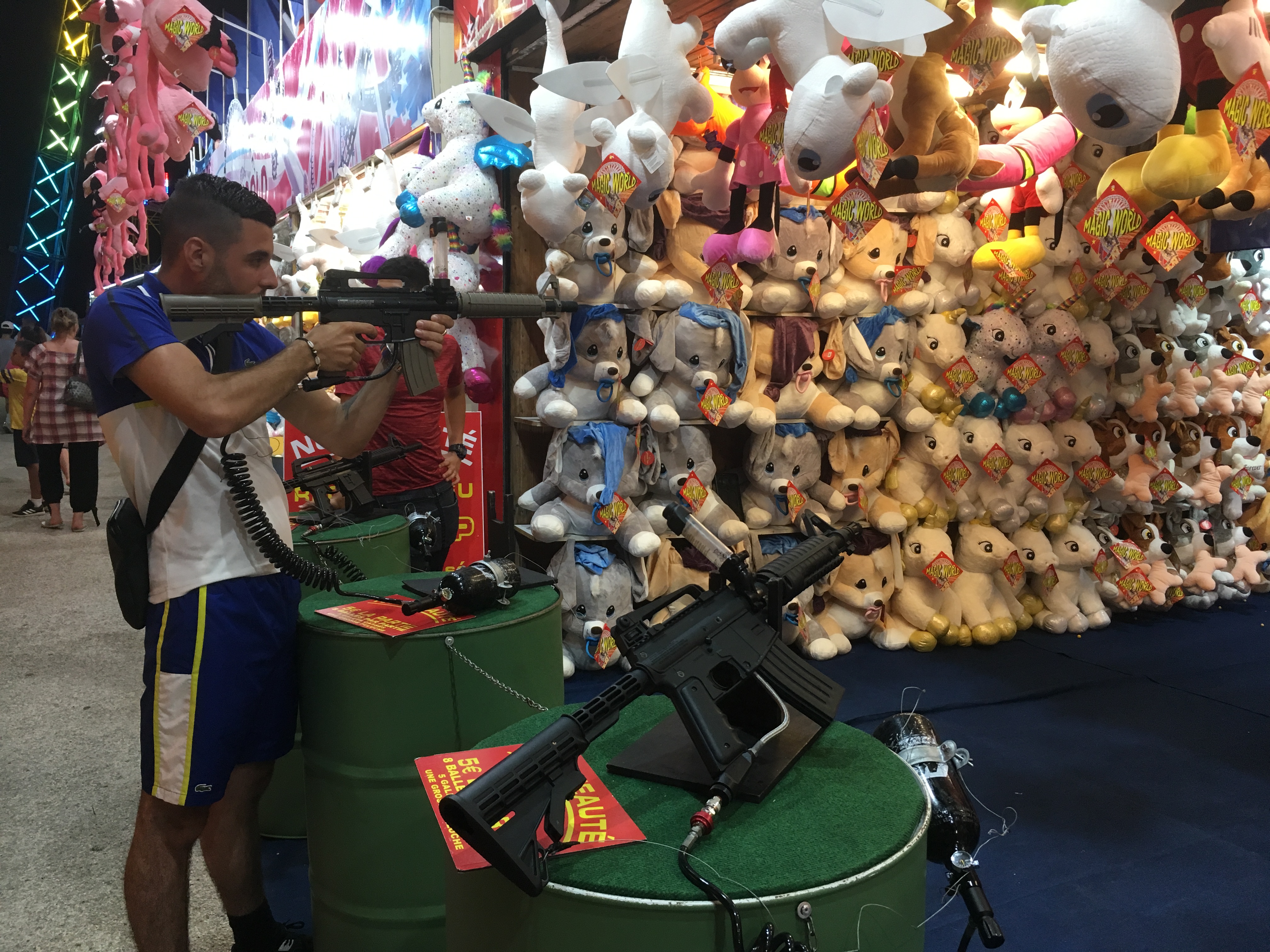 Enfant sur un dtand de tir dans une fête foraine.